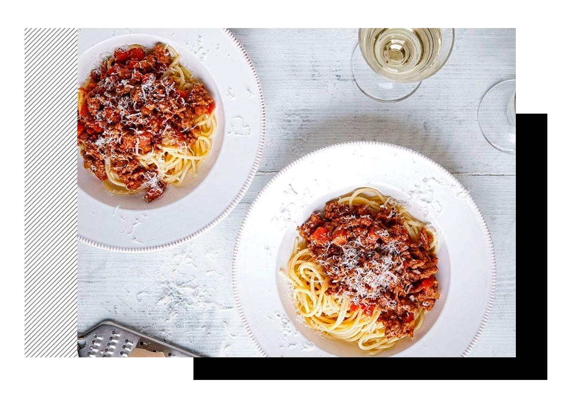 Сама назва говорить про його походження, Болоньєзе родом з італійської провінції Болоньї. Основою цієї страви є соус Болоньєзе – густий томатно-м'ясний соус з овочами, який, в класичному варіанті, подається з пастою тальятелле – це широка італійська локшина. Однак дуже часто можна зустріти варіацію цієї страви під назвою «Спагеті Болоньєзе», різниця лише в тому, що замість пасти тальятелле використовуються більш поширені в усьому світі спагетті.