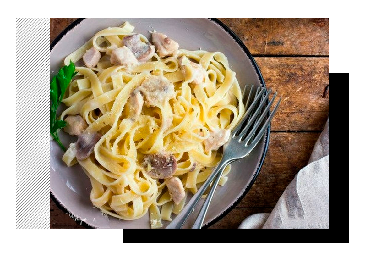 Фетучіні з телятиною та грибами під вкршковим соусом