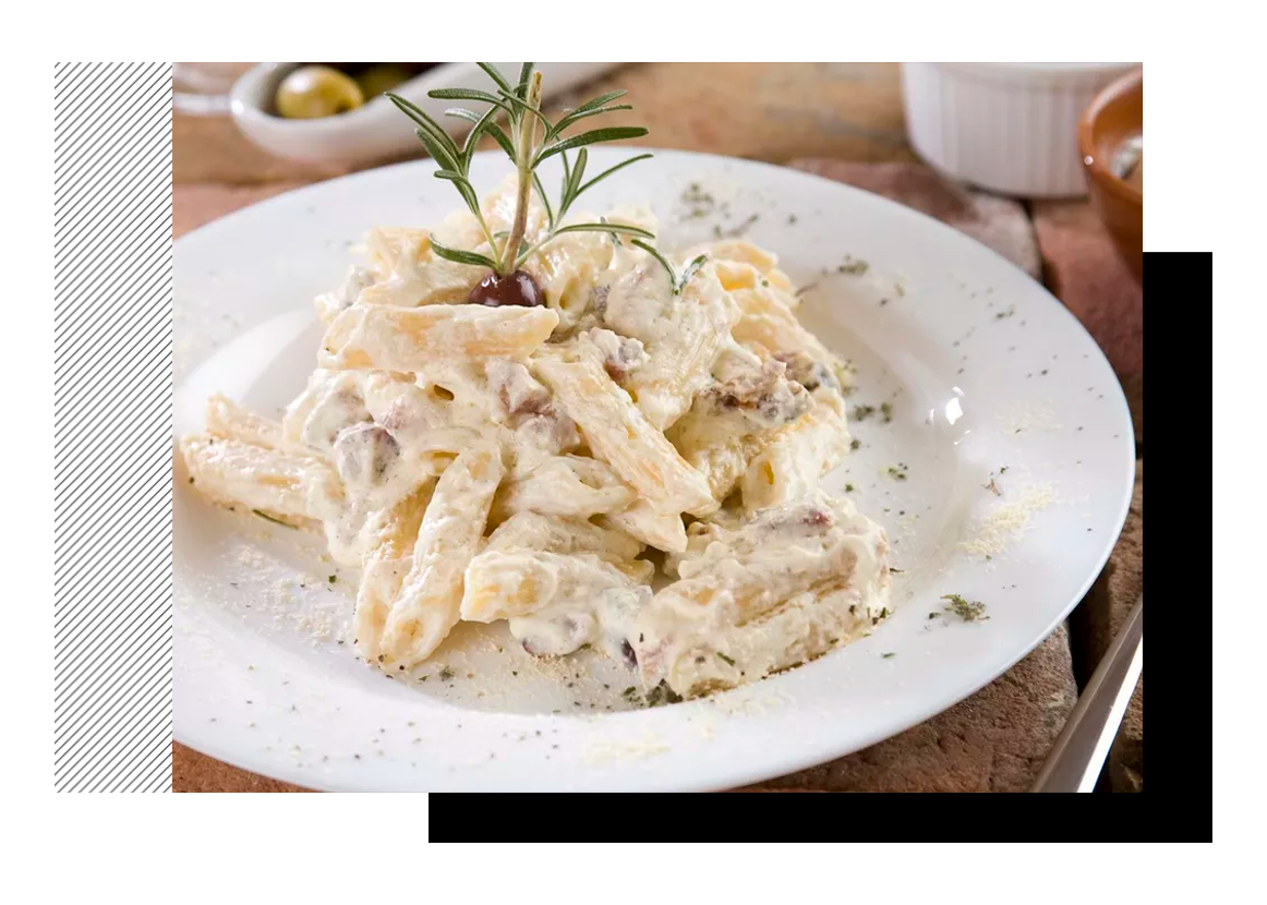 Пенне – вид коротких макаронних виробів; трубочки-пір'я діаметром до 10 мм і довжиною до 40 мм з діагонально зрізаними краями. Паста пенне готується з куркою у вершковому соусі.