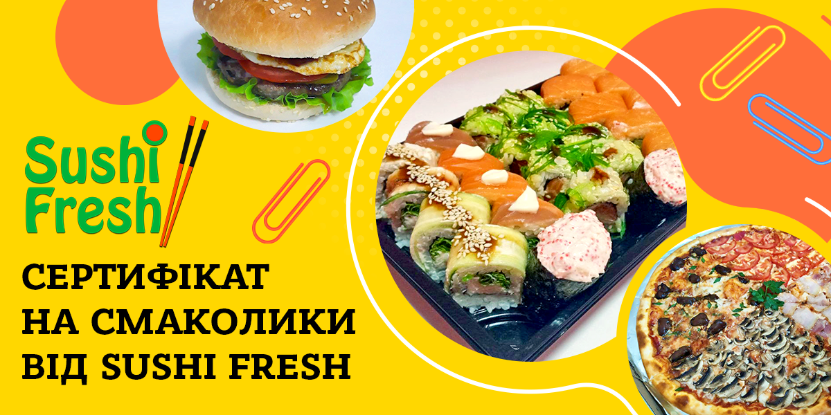 Sushi Fresh – це швидка доставка найпопулярніших у місті смаколиків. Доставляють суші та піцу, бургери, локшину і смачні грибочки, картоплю фрі та інші страви. В цьому фішка закладу – можна замовити і отримати всі улюблені страви, тобто «все й одразу».