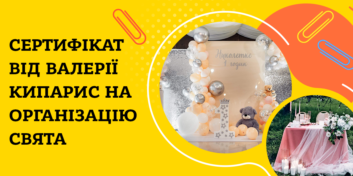 Валерія подарує сертифікат на знижку, оформлення чи оренду дитячої фотозони чи іншого свята, залежно від побажань переможця.