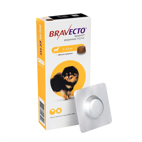 Таблетки Bravecto 2-4,5 кг (Бравекто) від бліх і кліщів для собак