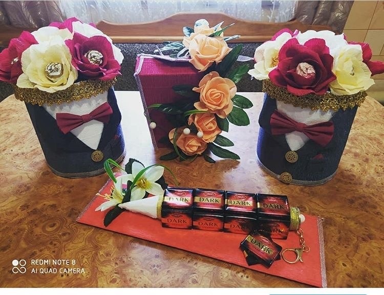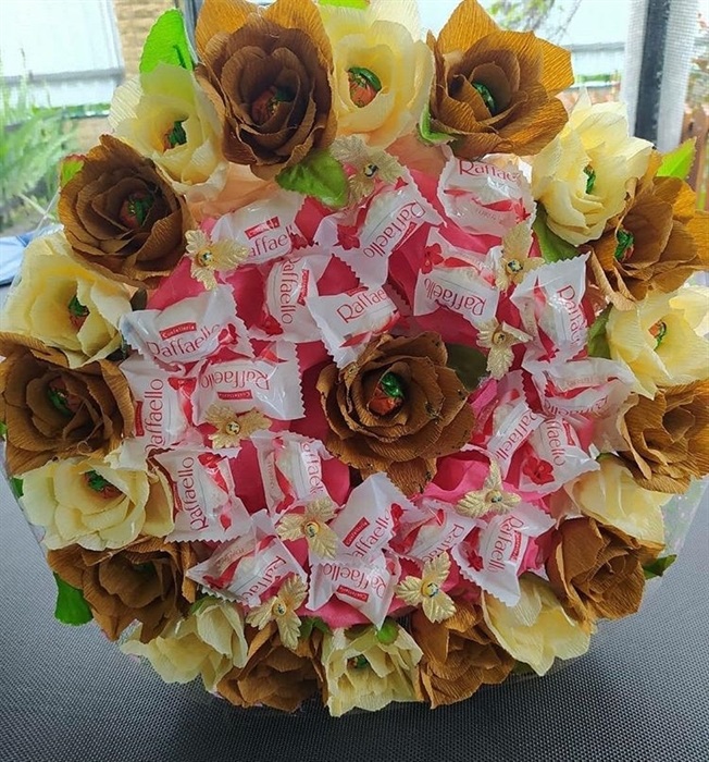 Займаюся оформленням фотозон. Ростовими квітами. Світильниками з величезних квітів. Роблю топіарій (кавові квіткові композиції). Торти з цукерок. Вироби до будь-якого свята, за бажанням замовника.