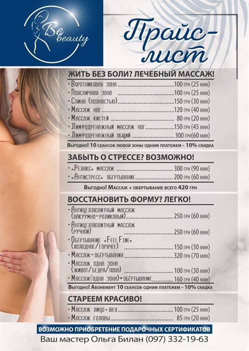 Лікувальний, лімфодренажній, антицелюлітний масаж, обгортування, шугаринг.